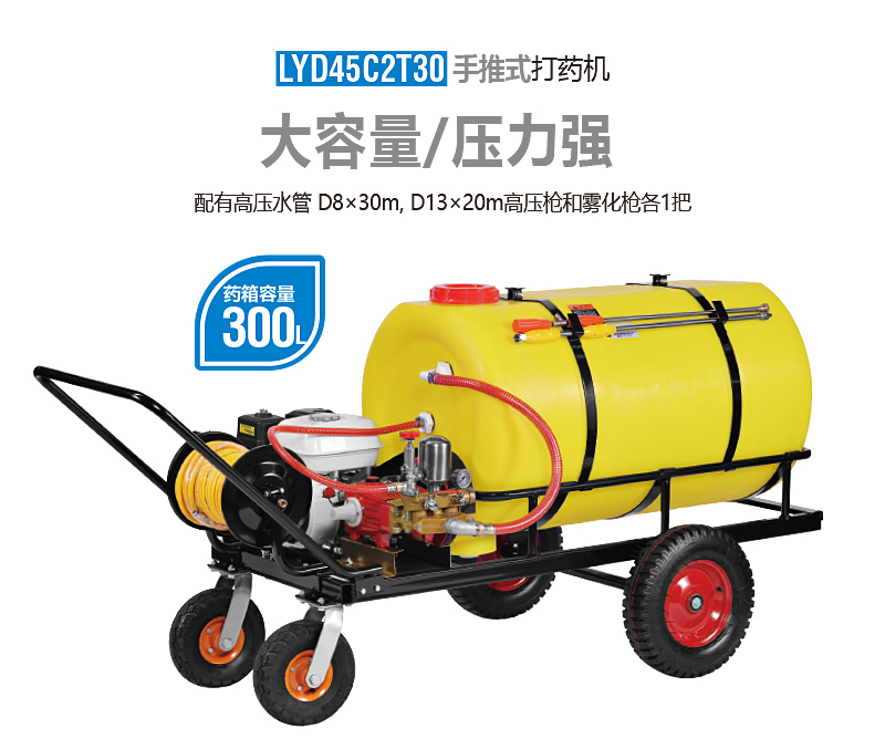 300L大容量手推機動噴霧機,是園林植保、農業花卉種植、公共場所衛生消殺等作業的常用機具。